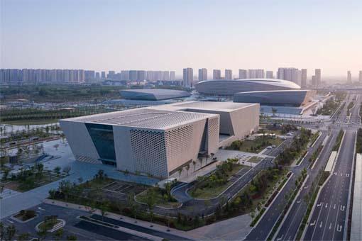 鄭州作為飛速發(fā)展的區(qū)域中心,其城市化進(jìn)程與歷史記憶之間的滌蕩沖突,為本次設(shè)計提供了一個二元化的復(fù)雜背景。鄭州美術(shù)館新館、檔案史志館項目位于鄭州西部新城區(qū)一片由曠野中拔地而起的集群建筑片區(qū)之中,本項目與鄭州博物館、鄭州大劇院共同組成未來的“文博中心”組團(tuán)。設(shè)計以抽象的氣韻回溯地域文化,原型的由來從當(dāng)?shù)氐纳讨芩囆g(shù)品和中原歷史建筑中探尋華夏原始審美的形態(tài)共同點,并在“似與不似”之間營造一種“神似”的模糊意象,力求在一瞥之間窺得文化記憶的神韻,并避免落入與具象形態(tài)之間簡單對應(yīng)的字面意義上的符號再現(xiàn)。
