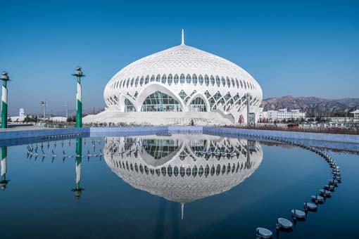 臨夏大劇院坐落于甘肅省臨夏市規(guī)劃新城的核心區(qū)域,用地面積52,300平方米,地上建筑面積 15,000 平方米,建筑總高度約 46 米。在建筑造型設(shè)計(jì)上,采用識(shí)別力強(qiáng)的簡潔幾何球體,配以經(jīng)典的比例形態(tài)及圖案紋理,但要把這樣精致且具象的造型放大成一個(gè)直徑90米、總高46米的公共建筑,無疑給設(shè)計(jì)師帶來了巨大的挑戰(zhàn)。